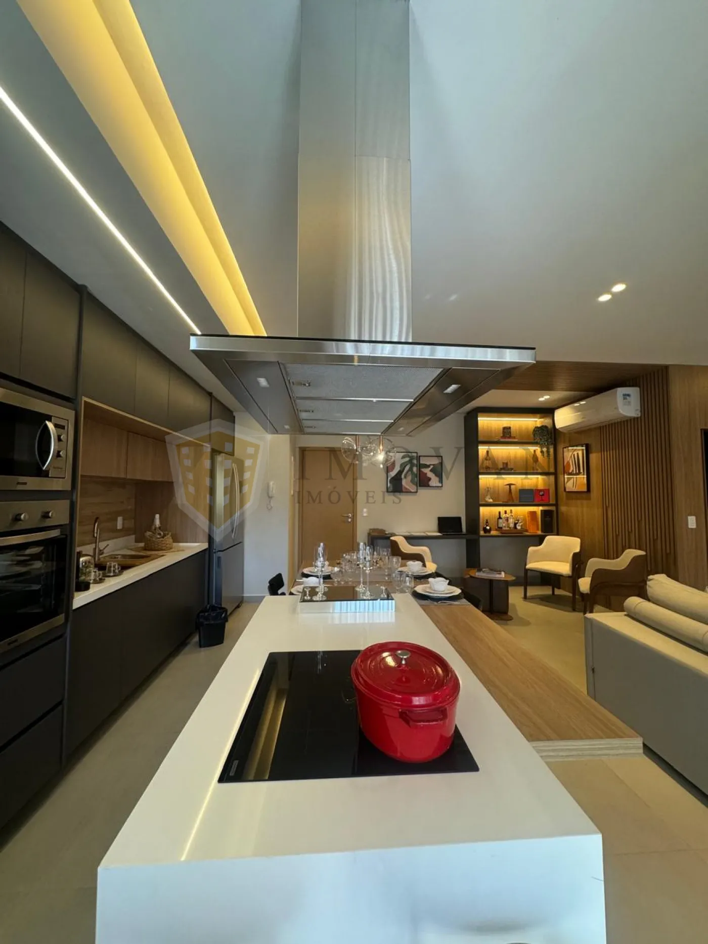 Cozinha Completa em Armários: Bancada com cooktop e coifa, otimizada para seu dia a dia.