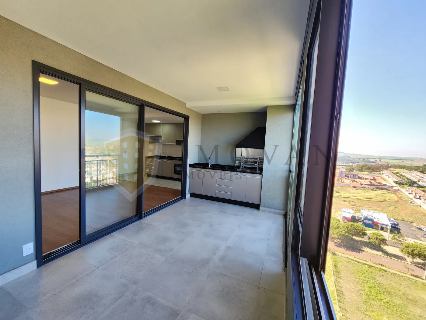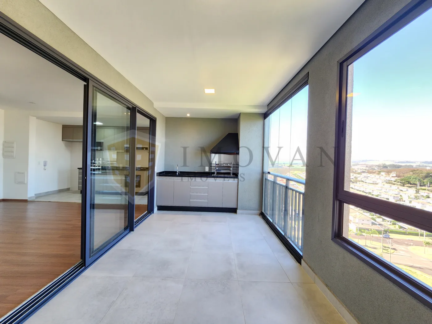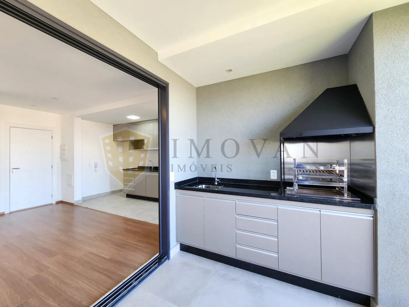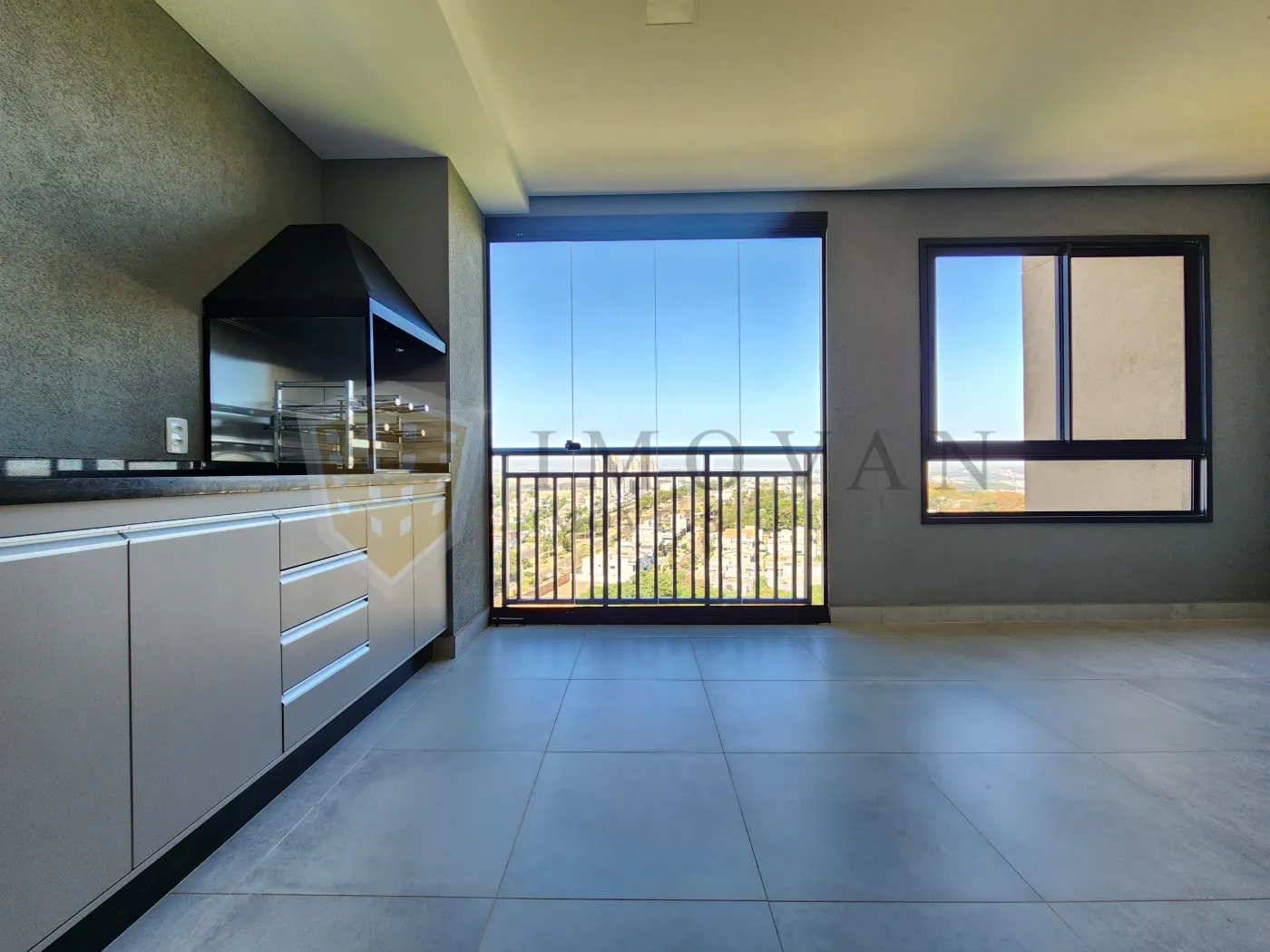 Varanda gourmet com churrasqueira, perfeita para lazer e refeições ao ar livre