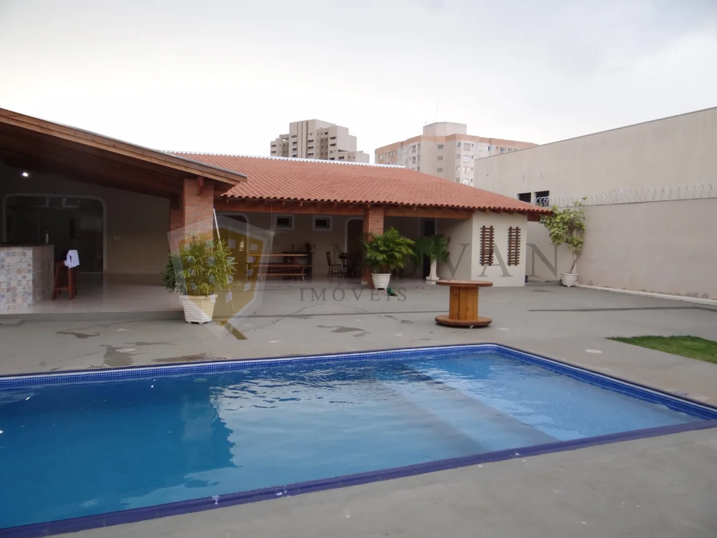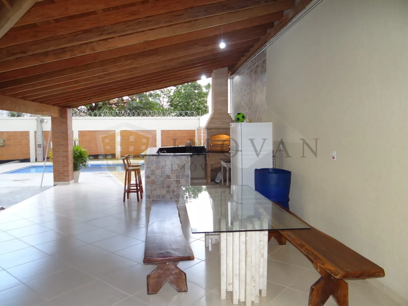 Excelente Localização, Próximo ao Ribeirão Shopping, Área de Lazer Mobiliada, Estrutura de Lazer: Linda piscina com degraus submersos, espreguiçadeiras para banho de sol, guarda-sol com mesas e cadeiras em volta da piscina, Amplo espaço coberto que acomoda até 60 convidados, Internet, Área gourmet completa com churrasqueira, pia, bancada com banquetas, fogão industrial, freezer, geladeira e microondas, Mesa de madeira retangular com bancos, mesa redonda de madeira com cadeiras, mesa de vidro com cadeiras e outras mesas de apoio, Ambiente aconchegante com paisagismo e área verde.