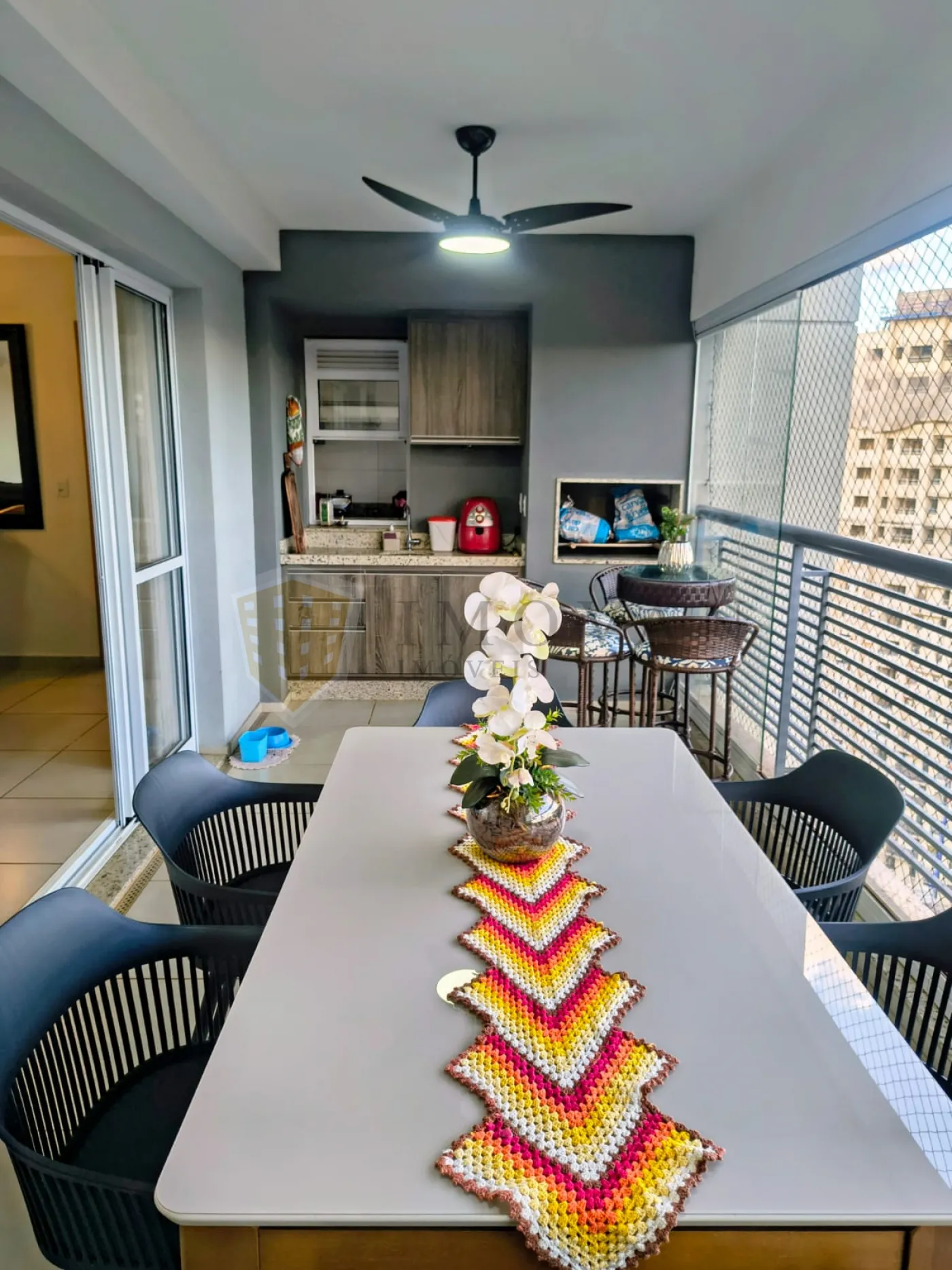 A cozinha é totalmente planejada, funcional e equipada para o dia a dia, além de contar com área de serviços independente. Um dos grandes destaques é a varanda gourmet com churrasqueira a carvão, ideal para momentos de lazer e convivência.