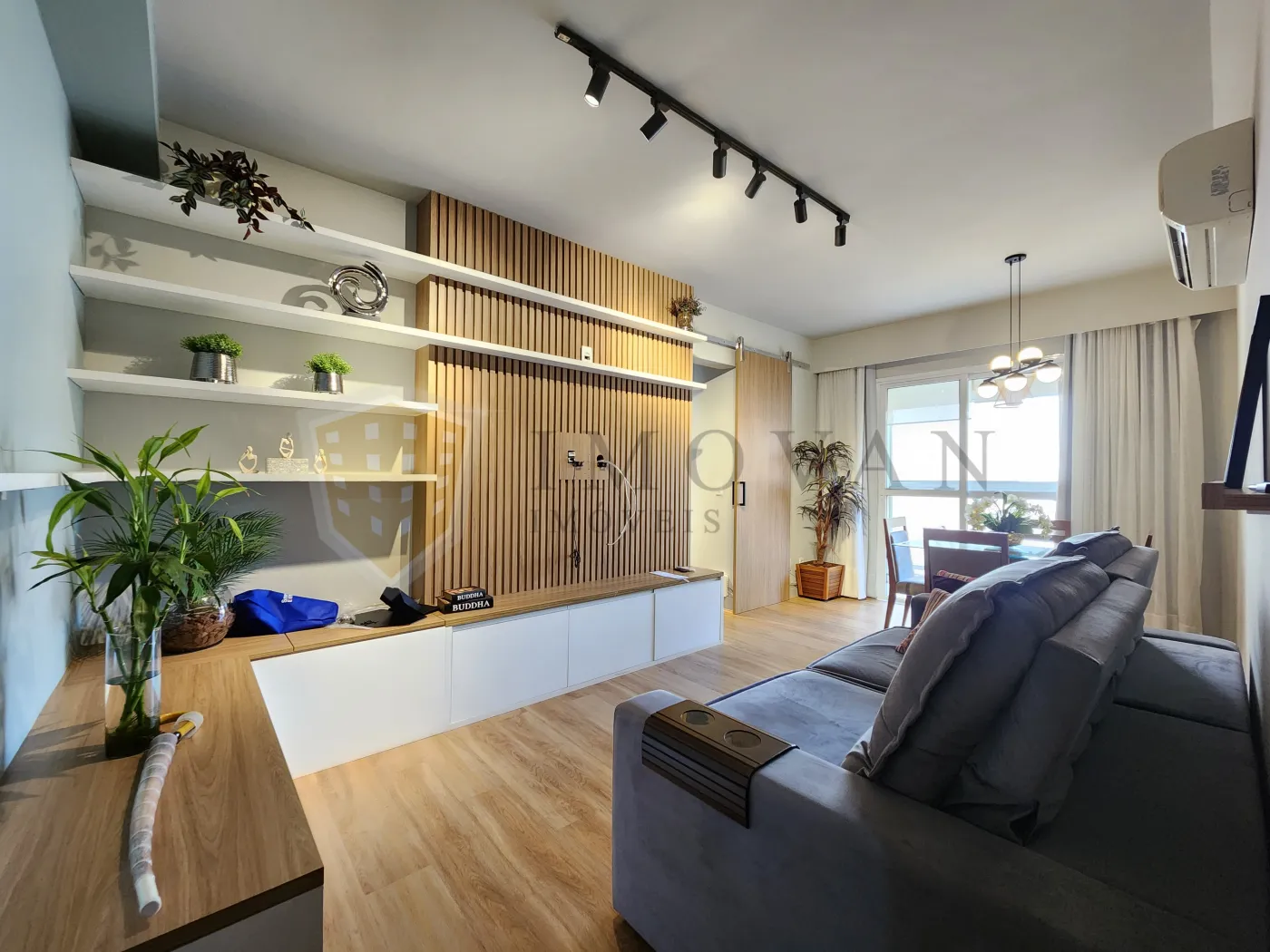 Sala para 2 ambientes, decorada e com excelente iluminação natural