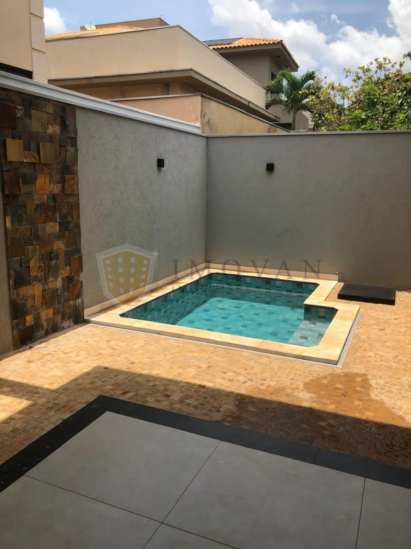 Piscina com hidromassagem e preparação para aquecimento
