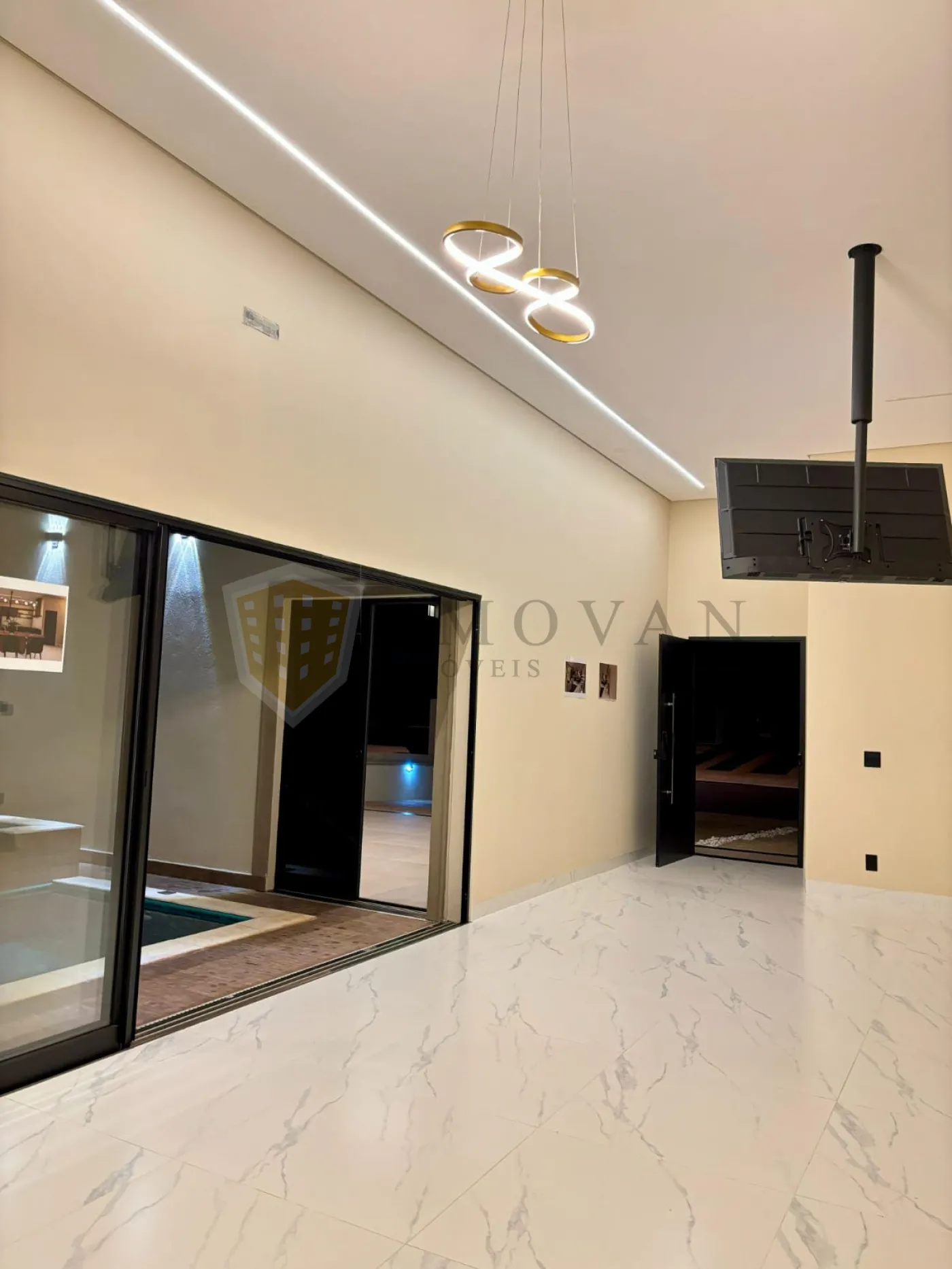 Sala com pé direito alto e integração total